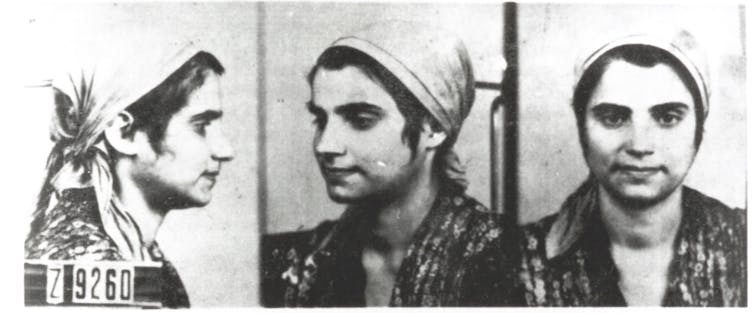 In this post-war image, taken by German journalist Reimar Gilsenbach in the 1950s, her camp number tattoo is just visible on her left forearm.