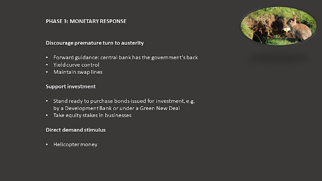 While restrictions remain in place and confidence is severely dented, it is too early for major stimulus of household demand. However, central banks could at this point do limited stimulus aimed at businesses rather than households, such as conventional QE and encouraging bank lending to SMEs.