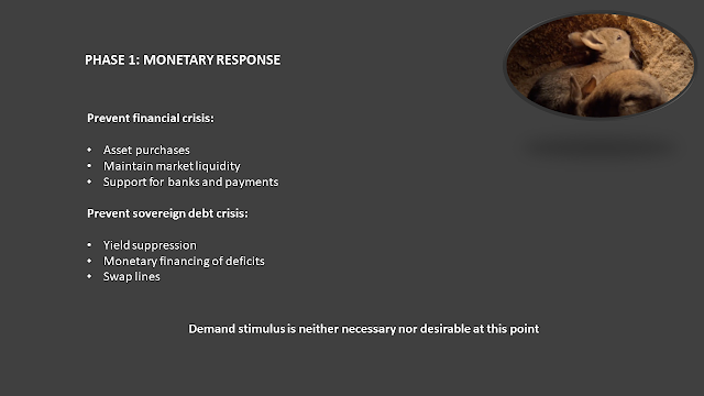 Some economists mistakenly called for central banks to do demand stimulus such as helicopter money. But it was completely the wrong time for this. Why dangle carrots in front of the burrows to entice the bunnies out while the hawk is still flying overhead? Fortunately, central banks ignored them.