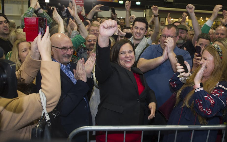 Sinn Féin president Mary-Lou McDonald celebrates victory in her Dublin constituency. Aidan Crawley/EPA