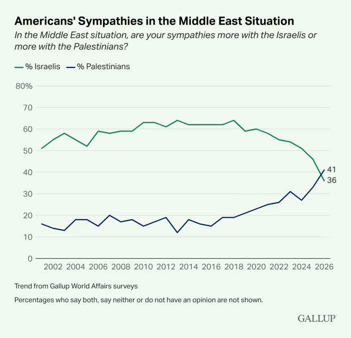 Even in this visible sphere, support for Israel has dramatically waned since the Gaza genocide. As the illegal war on Iran grows ever more costly, both in treasure and lives, support for Israel among US voters is going to fall off a cliff.
